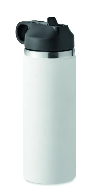 Izolowana próżniowo butelka z podwójnymi ściankami ze stali nierdzewnej z recyklingu (90% ze stali nierdzewnej z recyklingu i 10% ze stali nierdzewnej) z pokrywką z PP i wbudowaną słomką. Szczelna. Pojemność: 500 ml.