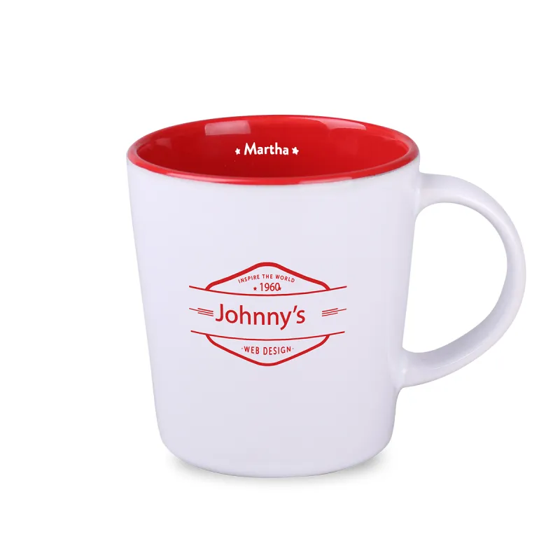 Klasyczny kubek o dużych możliwościach w zakresie customizacji. Posiada wnętrze w kilku modnych odcieniach. Jego duże proste ścianki doskonale wyeksponują naniesiony na niego nadruk.