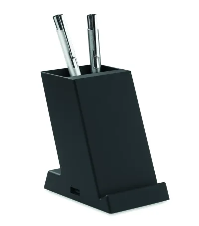 Ładowarka bezprzewodowa 15W z podwójną cewką i uchwytem na długopis z tworzywa ABS. Wyjście: DC 9V/1.67A (15W) do szybkiego ładowania. 1 port USB-A wyjście zasilania. Kompatybilna z najnowszymi systemami Androida, iPhone® 8, X i nowszymi.