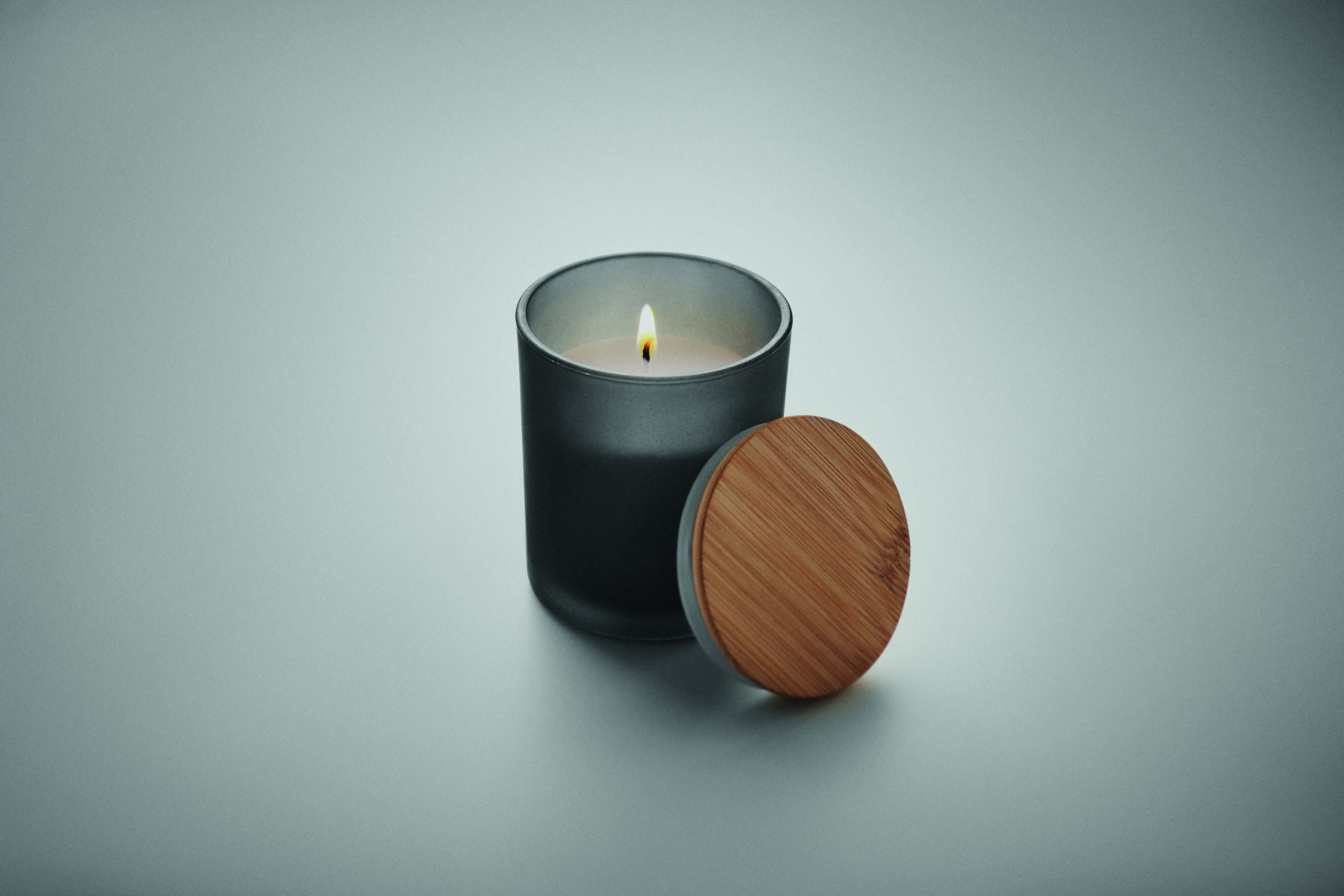 Wosk roślinny, świeca roślinna o zapachu cynamonu, wanilii, drzewa sandałowego lub jaśminu w szklanym, matowym pojemniku z bambusową pokrywką. 120 gr. Czas palenia: 20 godzin. Prezentowana w papierowym pudełku upominkowym w kształcie tuby. Bambus jest produktem naturalnym, dlatego mogą wystąpić nieznaczne różnice w kolorze, wzorze i rozmiarze.