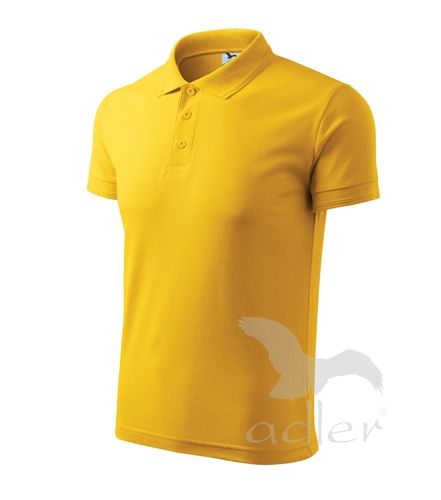 Męska koszulka polo z krótkim rękawem, z dzianiny typu pique. Nowa jakość splotu, mniejsze oczka pique - nadające się pod nadruk i haft. Rękawy i kołnierzyk wykończone podwójnymi ściągaczowymi plisami. 3 guziki w kolorze materiału. Lamówka wokół rękawów i kołnierzyka w tym samym stylu.